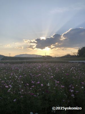 ブログ 2025.11.08 yokomizo 夕暮れのコスモス畑 ツイート シェア はてブ 送る Pocket 先日、所用で別府へ向かう途中、ふと目に入ったのは一面のコスモス畑。 調べてみると「三光コスモス園」でした。 帰り道に立ち寄ってみると、ちょうど夕暮れ時で、少しもの悲しさを帯びた美しい空も見ることができました。 定番のピンク 端っこピンクも可愛い 季節はずれのヒマワリも 夕日とヒマワリ 夕日とコスモス ツイート シェア はてブ 送る Pocket